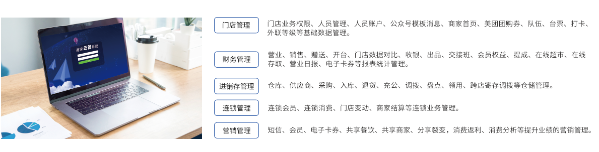 具有远程化、轻量化、数据化、即时化优点的商家云管平台,其线上线下互联、数据实时同步,让数据更安全、维护更方便、升级更无忧,也让商家门店连锁管理更严密,成本管控更科学。