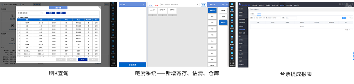 根据高端娱乐场所的需求,云管系统商务K模块主要包括人员管理、会员系统、吧厨系统、收银管理、报表管理、账单管理、营业汇总分析、首充返利、低消修改、开放预订权限、协议销账等丰富易用的功能。涵盖娱乐场所各个管理环节,全面帮助商家决策运营。
